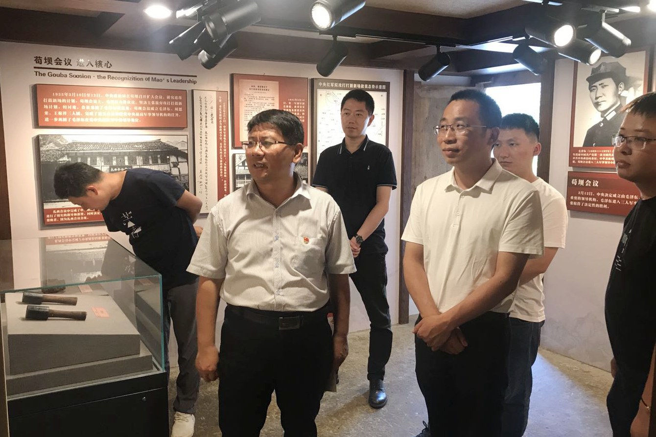 在紅軍烈士墓,大家仔細閱讀碑文,深入了解了紅軍戰士可歌可泣的英雄事迹,深切緬懷革命先烈的豐功偉績,學習他們為革命勝利不怕苦、不怕死的大無畏革命精神。在長崗毛澤東住地舊址,大家通過參觀和音視頻介紹,了解了毛澤東在這裡謀劃了“佯動四川、南渡烏江、調出黔軍、進軍雲南,北渡金沙江入川與紅四方面軍會師”的戰略決策,以及部署了先打後走,先發制敵的魯班場戰鬥過程。同時大家無不為落在屋裡、院子的兩枚未爆炸炮彈的驚險場面而感歎。
