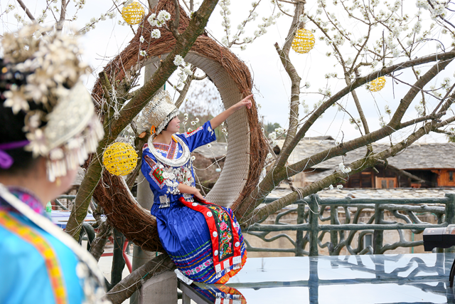 “來,請大家在這邊拍照打卡。”說話的姑娘叫楊慧,也是車田人。随着村裡的環境變好,遊客自然多了起來。“還不到周末,每天就有幾十上百人。”楊慧自學了拍照,一部單反相機、一台電腦,再加上村裡苗族同胞的特色服飾,便成了楊慧一家的“旅遊産業”,“收入還不錯呢!”
